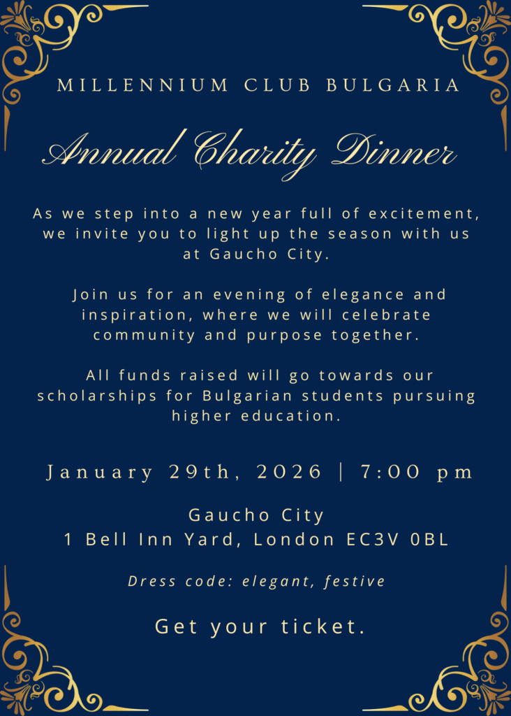Join us on January 29th at Gaucho City, London, for an elegant evening of generosity and celebration—supporting scholarships for Bulgarian students. Secure your seat and make a difference, while delicious food, wine and great conversations.